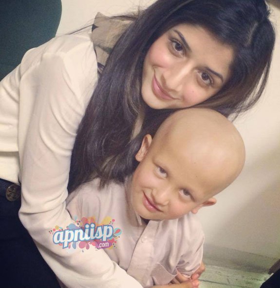 Mawra Hocane snapped with a cancer patient at charity event of Shaukat Khanum Memorial Cancer Hospital.