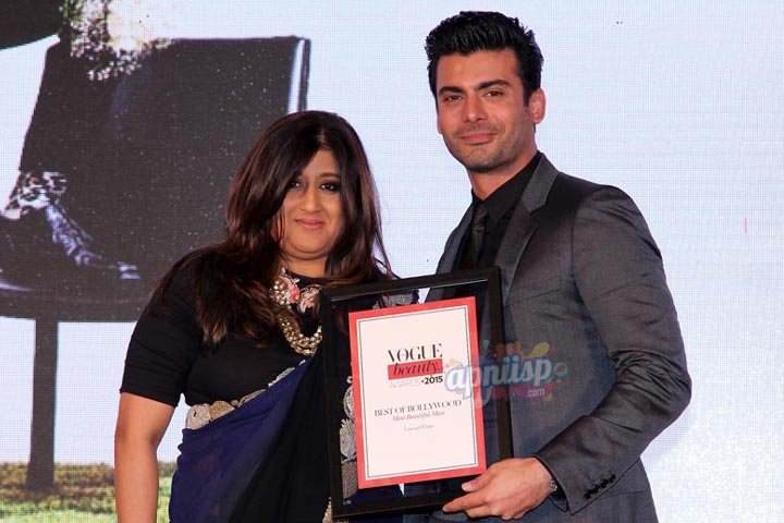 Pakistani heartthrob Fawad Khan awarded as most beautiful actor at Vogue Beauty Awards 2015 in India.