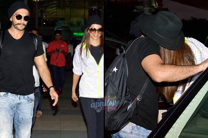 Ranveer Singh & Deepika Padukone spotted comfortable kissing in front of media at airport.