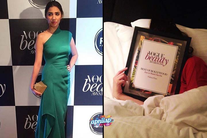 Mahira Khan won Face to watch out for award at Vogue Bollywood beauty awards in India.