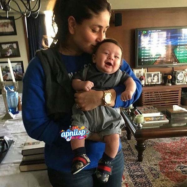 Here is the first picture of Kareena Kapoor holding her cute son Taimur Ali Khan in arms.