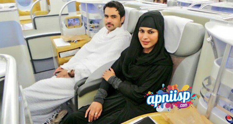 Veena Malik and her husband Asad Bashir Khan Khattak on their way to Saudia for Umrah.