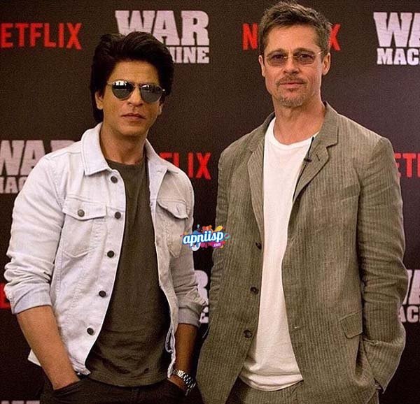 Shahrukh Khan meets Hollywood actor Brad Pitt during his promotional tour of War Machine in India.