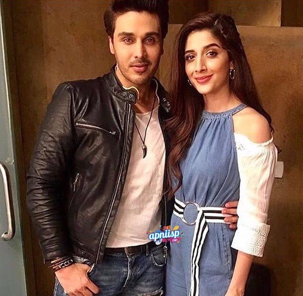 Mawra Hocane with Ahsan Khan on the sets of his upcoming game show.